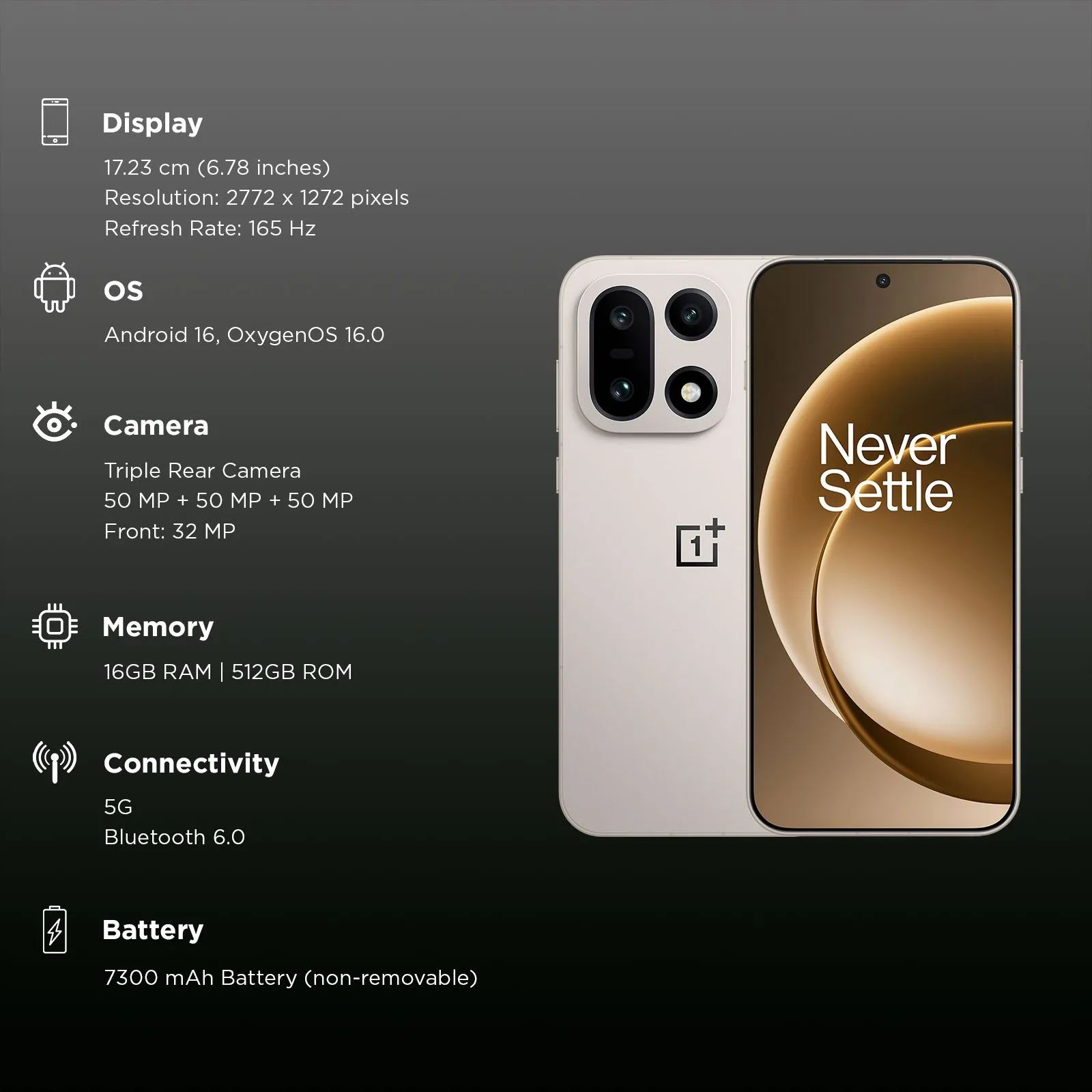 OnePlus 15 5G (16GB RAM, 512GB, Sand Storm)